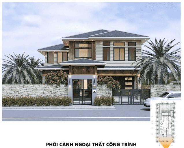Biệt thự có quy mô 2 tầng thiết kế theo phong cách hiện đại có diện tích xây dựng là 19m x 20m. Theo nhu cầu của cô chú chủ nhà là không cần những không gian như phòng giải trí hay karaoke, chủ yếu là phải tối ưu sao có 3 phòng ngủ thật thoải mái.